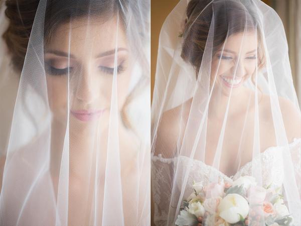 Có thể xem cách tạo dáng này như biến thể của một bức chân dung. Bức ảnh chụp xuyên qua tấm voan lưới tạo nên nét lãng mạn, mềm mại mà hầu như cô dâu nào cũng yêu thích.