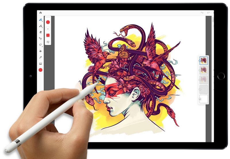 Khả năng tích hợp giữa ứng dụng và bút Apple Pencil cho phép tút ảnh, xóa hoặc nhân bản các chi tiết trở nên hiệu quả hơn hẳn. Giống như desktop, Photoshop CC dành cho iPad có một thanh công cụ đầy đủ cùng giao diện quản lý layer với các công cụ, bộ lọc, các tùy chọn tinh chỉnh và mặt nạ mà những fan Photoshop đều đã quen thuộc.
