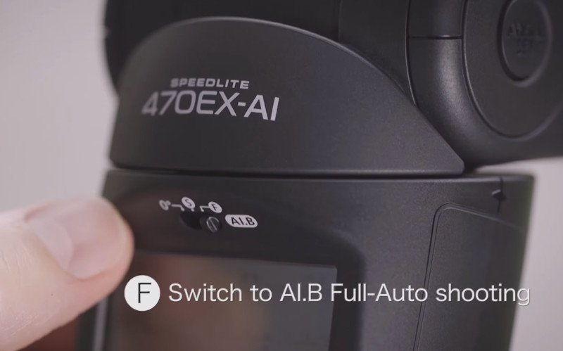 Khi bật công tắc chuyển chế độ, bạn đặt thiết lập flash sang AI.B Full-Auto, chỉ cần chọn vị trí chụp thích hợp và bấm nút AI.B. Sau đó, đèn flash 470EX-AI sẽ kích hoạt hai lần nhấp nháy riêng biệt: lần đầu để đo khoảng cách tới đối tượng của bạn và lần sau để xác định khoảng cách tới trần nhà. Đèn flash sẽ tự đo số và tính toán góc phản sáng tối ưu cho ảnh của bạn.