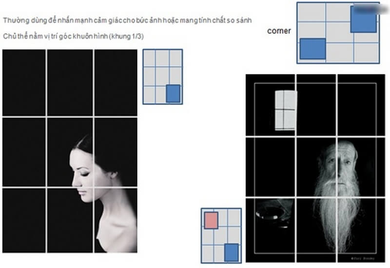Thông thường, nhiều người chơi ảnh nghiệp dư chỉ nhớ tới quy tắc một phần ba và luôn ứng dụng triệt để vào các tác phẩm của mình. Tuy nhiên, nếu đi sâu hơn một chút, còn nhiều cách sắp xếp khác để tạo ấn tượng cho người xem cũng như ngay chính quy tắc một phần ba cũng được chia làm nhiều kiểu khác nhau. Với các bức ảnh chân dung, đôi mắt luôn là tâm điểm chú ý và được các nhiếp ảnh gia quan tâm nhưng cách sắp xếp bờ vai, khuôn mặt, mái tóc hay tay cũng giúp tạo ra những sắc thái khác biệt.