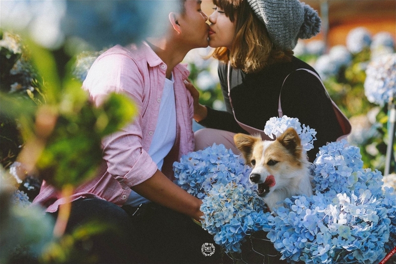 Đặc biệt, nếu đến Đà Lạt vào khoảng tháng 10 – tháng 11, các cặp đôi có thể chụp ảnh với hoa dã quỳ. Dã quỳ tuy không lớn như hướng dương nhưng do mọc thành bụi nên khi bung nở sẽ tạo nên một thảm vàng rực rỡ. Sắc vàng ấy như sưởi ấm cao nguyên lạnh giá, làm mê hoặc bất kỳ ai đi ngang qua.