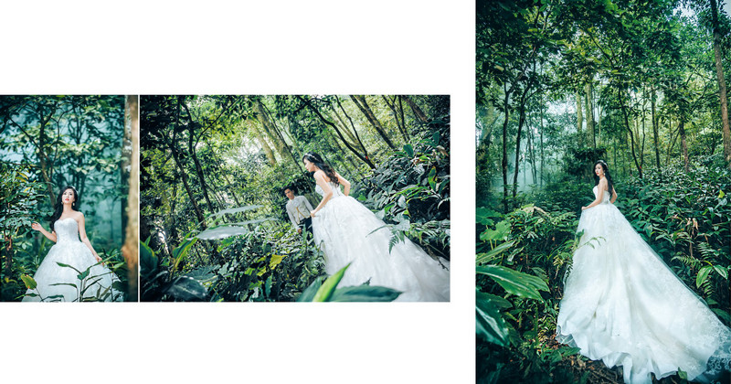 Chụp ảnh cưới tại Ba Vì, bạn sẽ có những bức ảnh cưới độc đáo với khung cảnh rừng cây rậm rạp. Tuyệt vời làm sao, giữa núi rừng hoang sơ, một cô dâu xinh đẹp xuất hiện như gợi nhắc cho mọi người về câu chuyện cổ tích Nàng công chúa ngủ trong rừng.